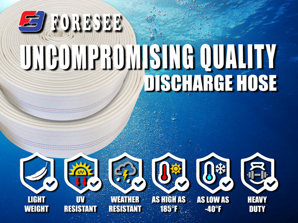 The Foresee premium polyester yarn hose proves versatile across industrial, construction, and agricultural settings. Its lightweight construction facilitates effortless handling, complemented by a lay-flat design that simplifies storage and transportation. Compatible with common-size connectors, it offers seamless integration into existing systems. Resilient against harsh weather and UV exposure, this hose boasts a wide operating temperature range from -40°F to 185°F, ensuring reliable performance in diverse conditions.