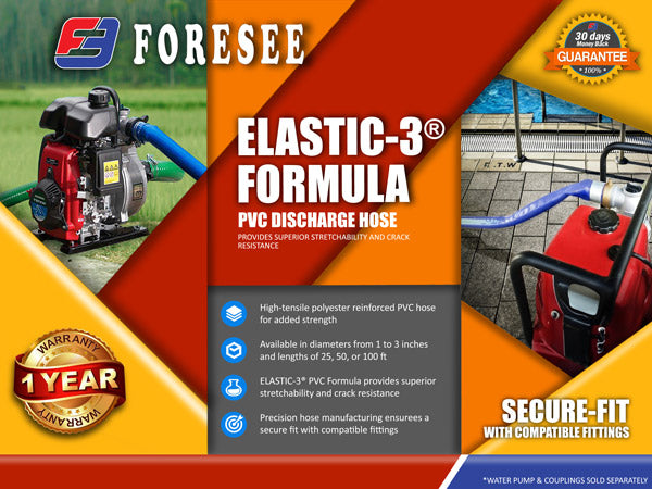 The Foresee PVC hose utilizes our patented ELASTIC-3 formula, ensuring superior stretchability and crack resistance. Manufactured in our ISO-9001 certified facility, these hoses are crafted with precision and guarantee a secure fit with compatible fittings.
